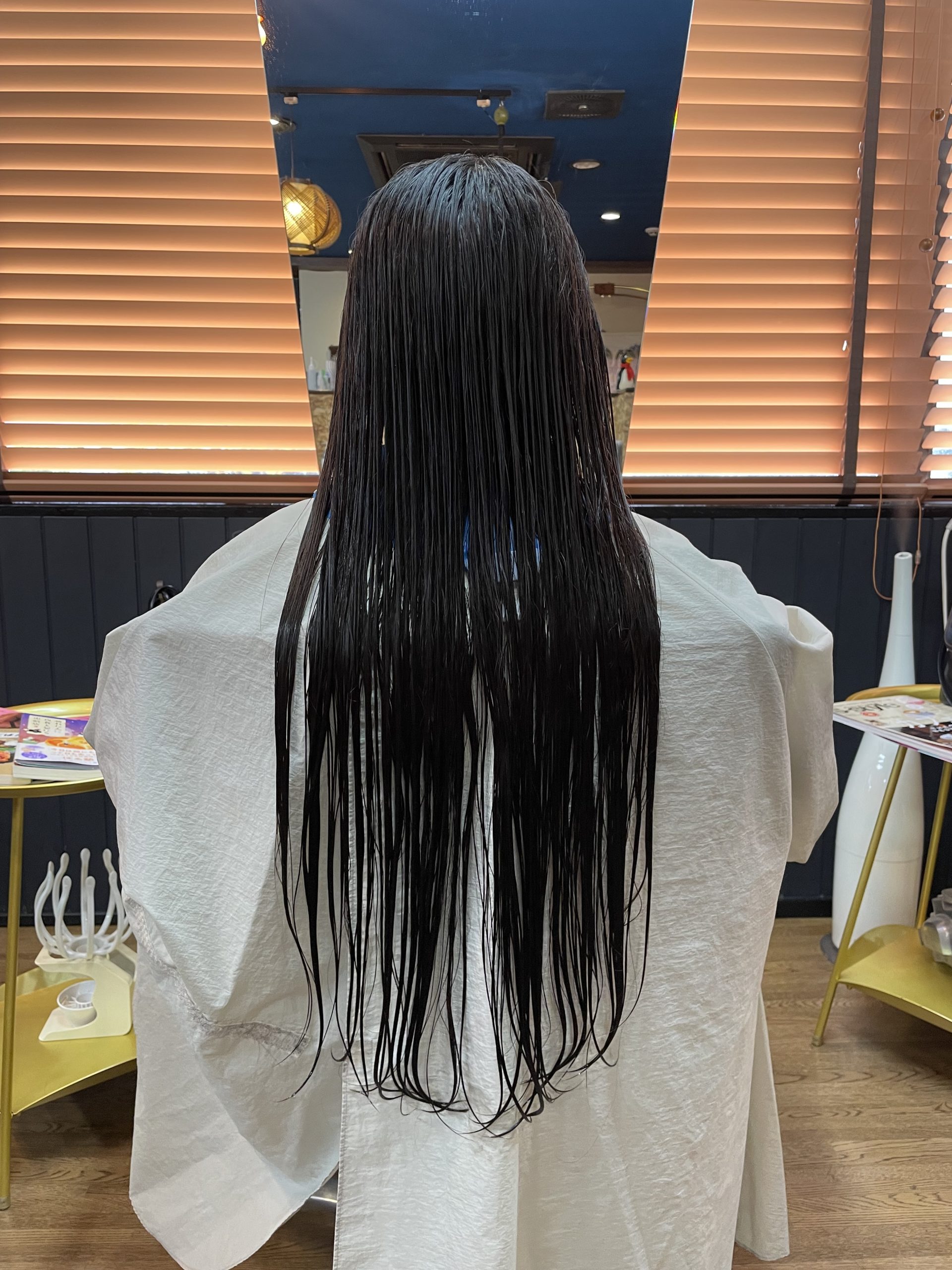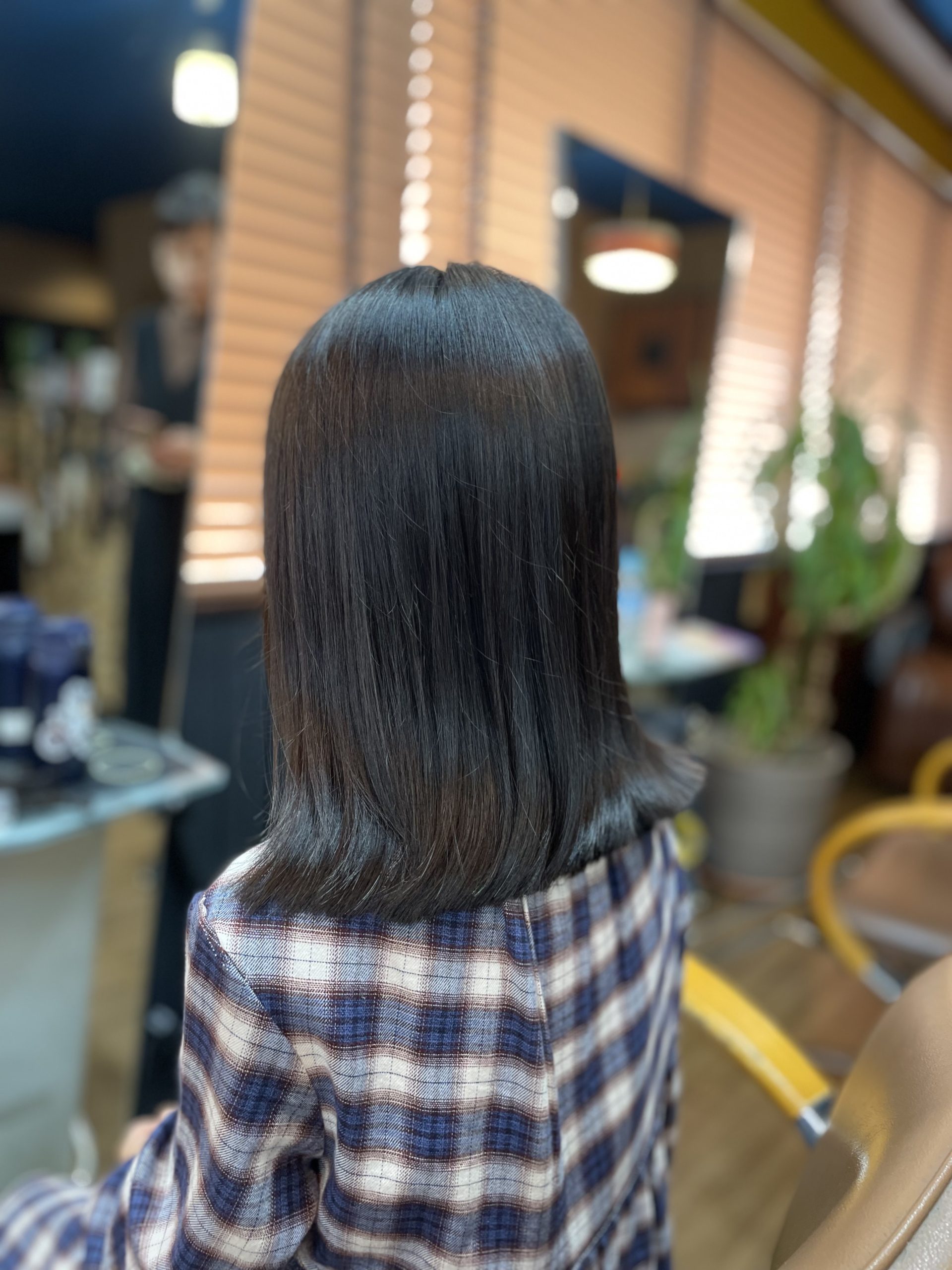 仕上がりはこちら。習い事の関係でセニングなしのレイヤーなし。ぱっつんワンレンがとってもお似合いで可愛かったです♡